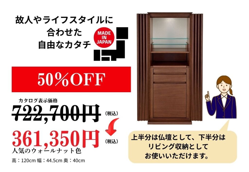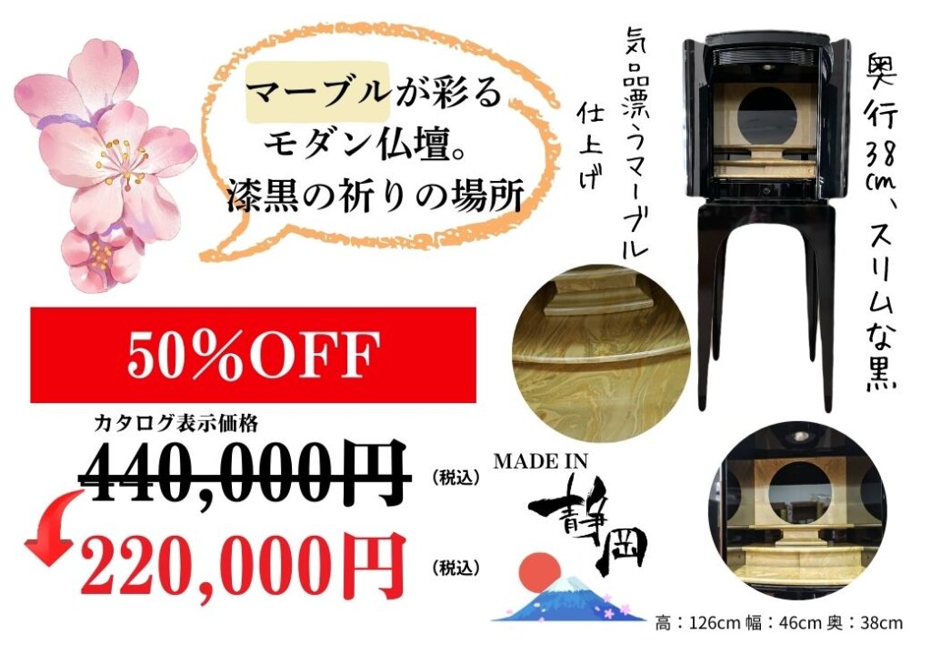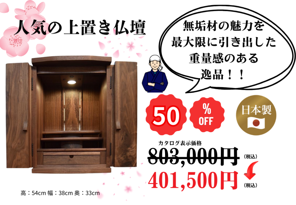 ※掲載している商品はほんの一部です。この他にも伝統的な金仏壇から、唐木仏壇も豊富に展示。万が一、掲載商品が売り切れの際はご容赦ください。