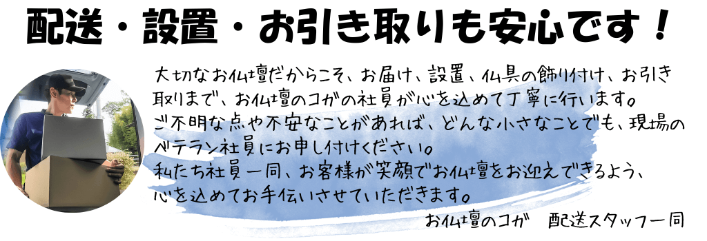 お仏壇のコガなら、ご購入後も安心が続きます!