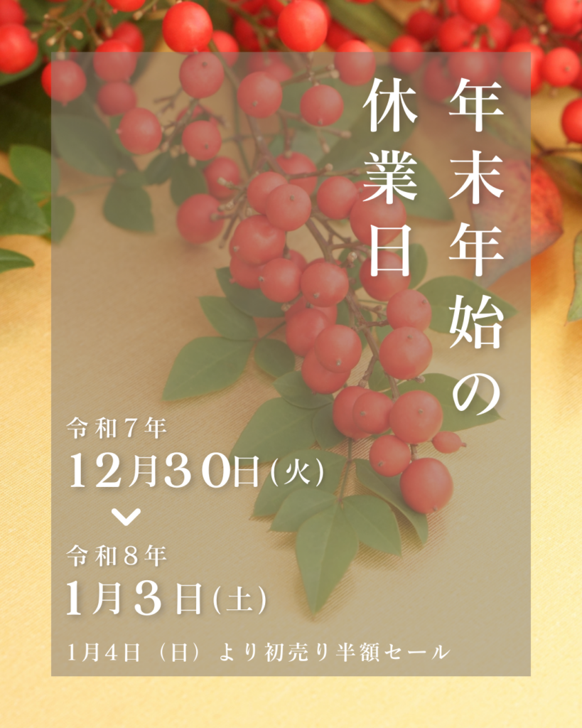 ・12月30日(火)~1月3日(土) 休業